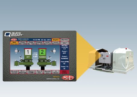 QUICKSMART™ brinda una capacidad incomparable para monitorear y ajustar todas las funciones de su estación con una operación simplificada y completa. Su nuevo diseño hace que las modificaciones de control, navegación entre pantallas y visualización del estado de la estación de bombeo sean más fáciles que nunca, con botones de función y una barra de estado accesible desde cada pantalla. Otras funciones llevan la funcionalidad del controlador de la estación a nuevos niveles. Por ejemplo, la nueva función de registro de mantenimiento, que muestra las instrucciones de operación/mantenimiento periódicas recomendadas y hace sugerencias de lubricación basadas en los tiempos reales de funcionamiento de la bomba. O la pantalla mejorada de soporte de ayuda/guía para la solución de problemas y una nueva pantalla de estado de E/S (I/O en inglés) que muestra el estado de E/S digitales y análogas del controlador.