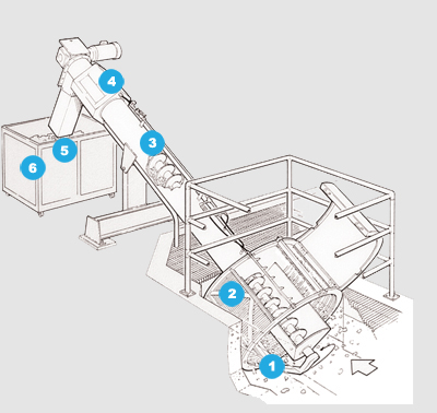 Los sólidos removidos son lavados, deshidratados y prensados para opcionalmente colocarse en bolsas para su disposición final.